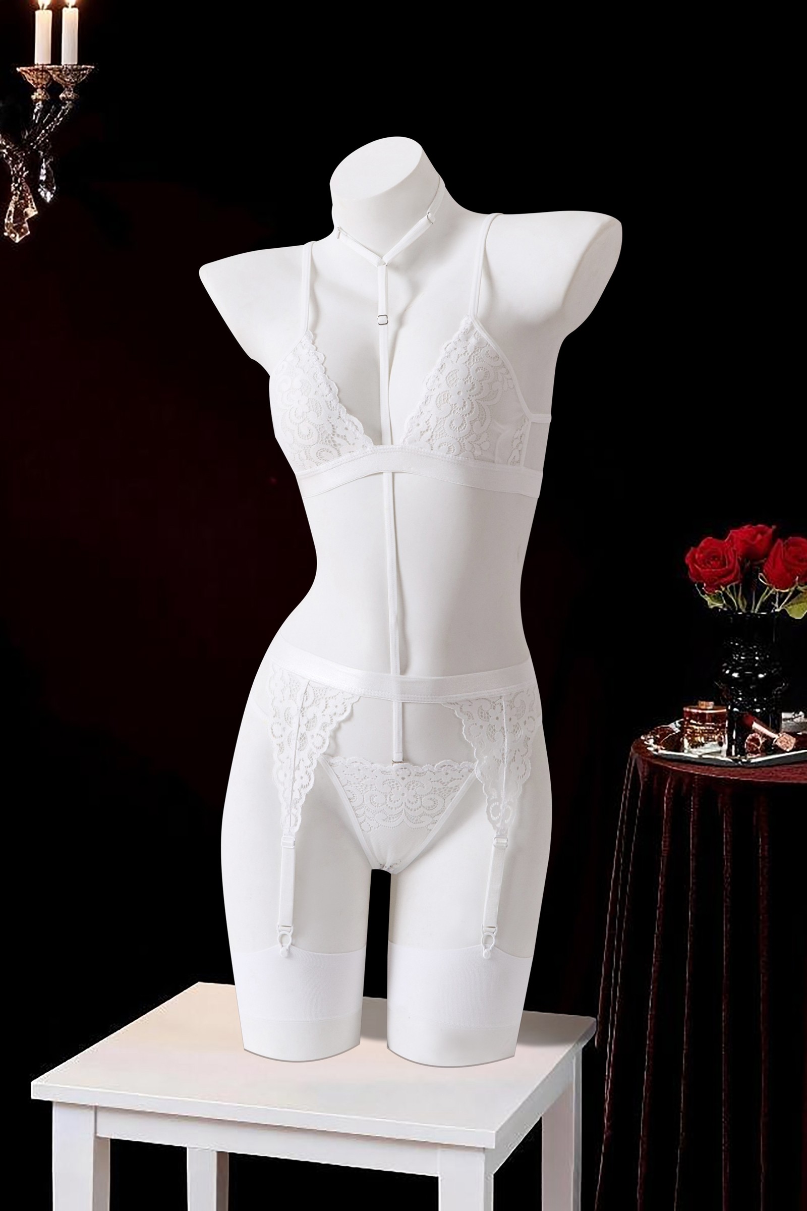 White bra set with stockings