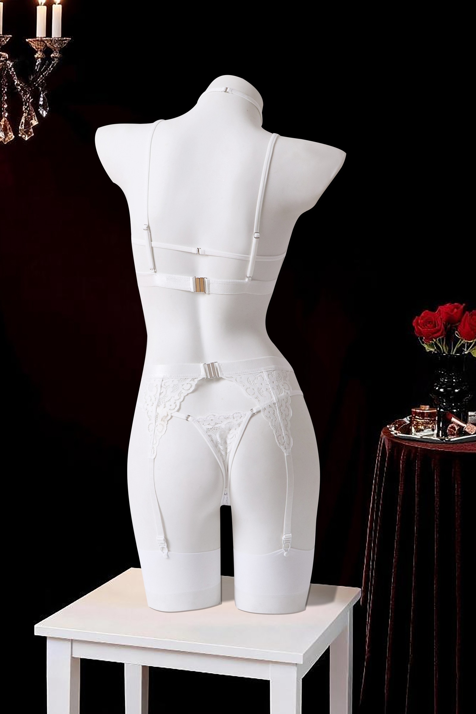 Indulge in a touch of luxury and sensuality with our exquisite white lingerie set.