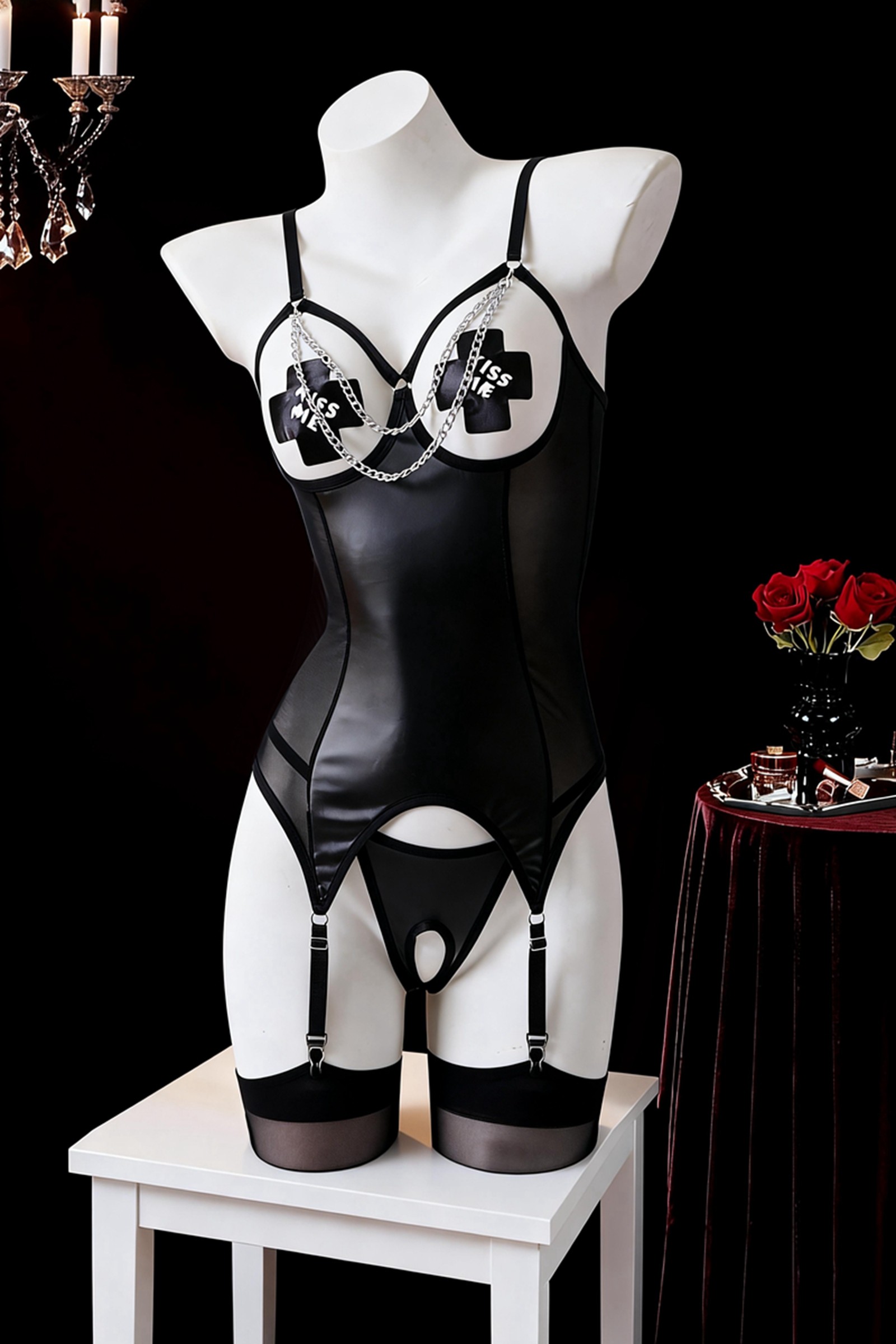 CR 4831 Czarny gorset otwartymi miseczkami